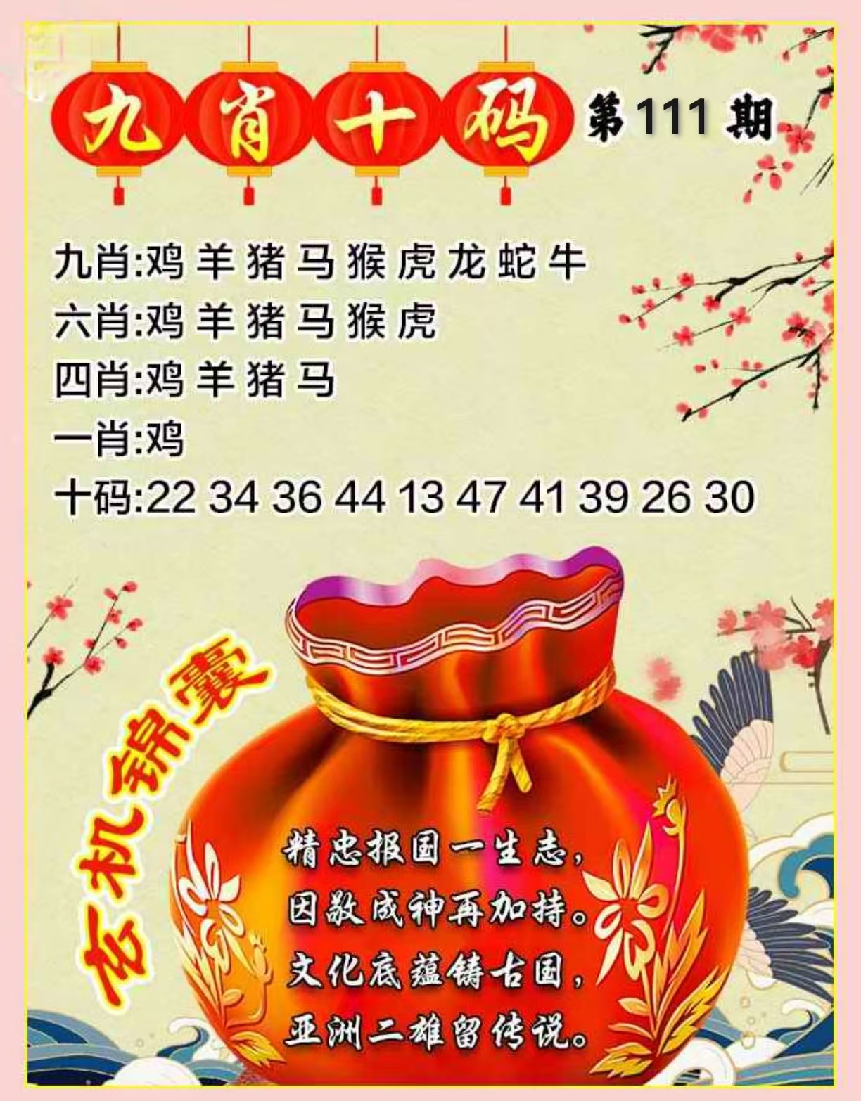 109期6肖鸡猴狗猪虎
