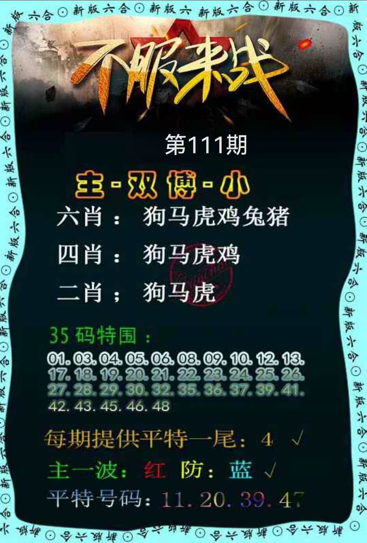 108期蓝单20开鼠43准